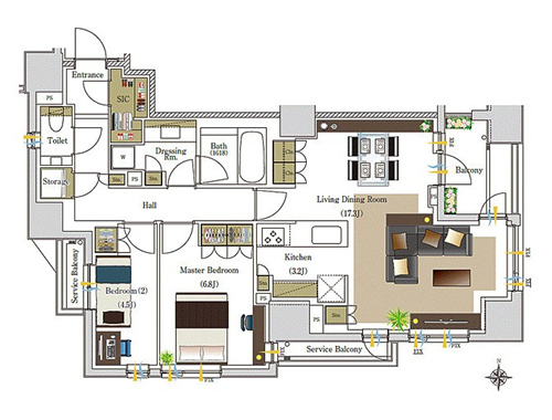 | 房型 | 2室1廳+SIC+Storage | 朝向 | 南東西 |