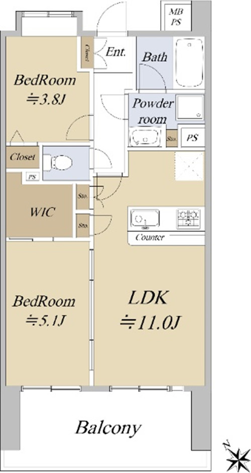 | 房型 | 2室1廳+WIC | 朝向 | 南西 |