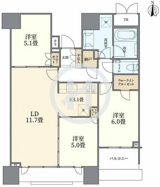 房產戸型:3室1廳(南向)