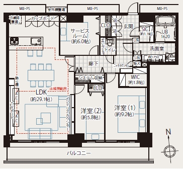 管理費:22,300(W棟)+800(全體)日元/月