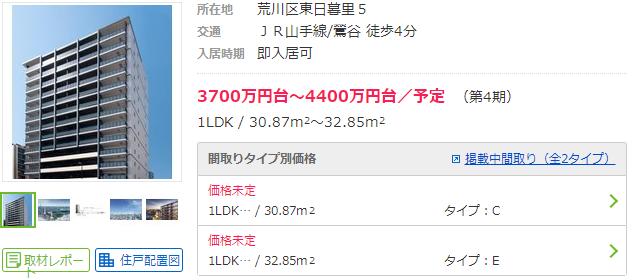 鶯谷車站附近的新建公寓,1LDK的價格約4000萬日元左右。
