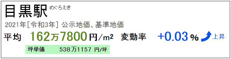 目黑站2021年公示的基準(zhǔn)地價(jià)為每平方米162.78萬(wàn)日元,多年來(lái)呈持續(xù)上漲趨勢(shì)。