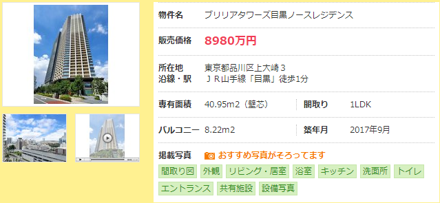 距目黑站步行1分鐘左右,2017年9月交房,面積為40.95㎡的1LDK的二手房售價(jià),約為8980萬(wàn)日元。