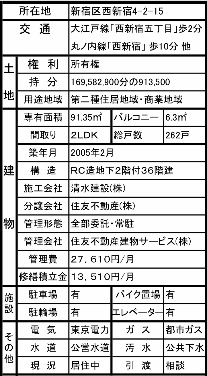 項目附近有多條線路可以使用,大江戶線“西新宿五丁目站”步行2分鐘、丸內線“西新宿站”步行10分鐘、JR“新宿站”15分鐘、大江戶線“都廳前站”7分鐘、京王線“初臺站”13分鐘。