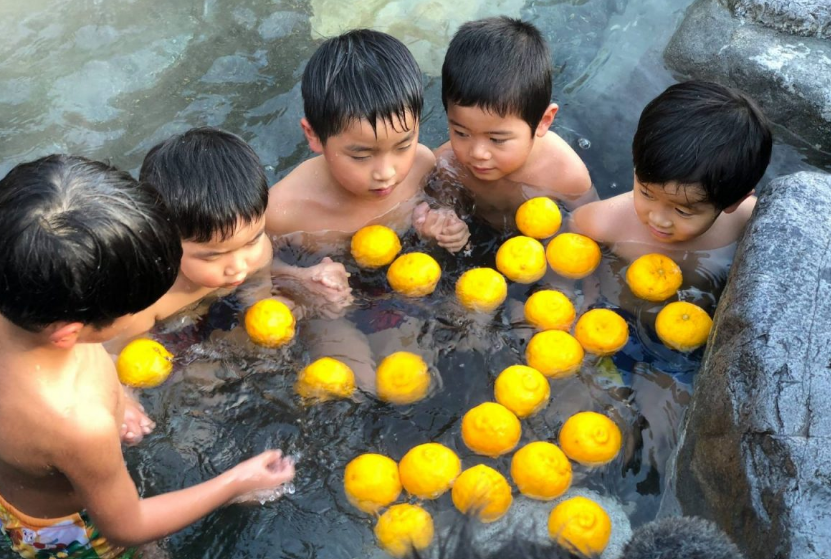 日本的很多溫泉或澡堂,也會在冬至這天,特意在泡池中放入柚子來吸引顧客,大家共同泡澡,祈求新一年的好運。