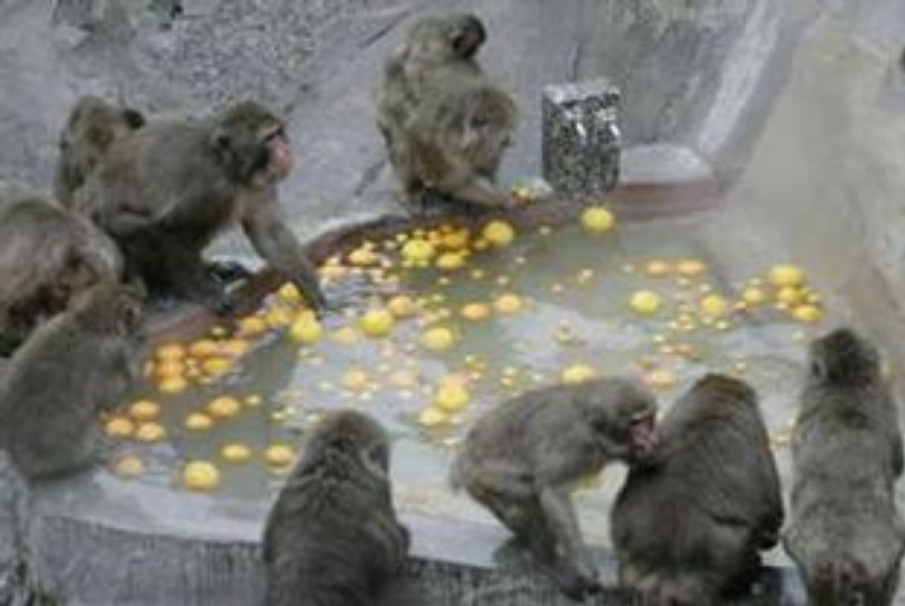 不僅如此,在一些露天溫泉里,也會放入很多柚子,不僅泡溫泉的人可以好好享受柚子溫泉,柚子的味道往往還會招致一些如猴子等小動物的到訪,于是人與動物一起泡溫泉的溫馨畫面也成為各大媒體相繼報道的新聞,也更吸引了人們想跟動物一起泡溫泉的愿望。