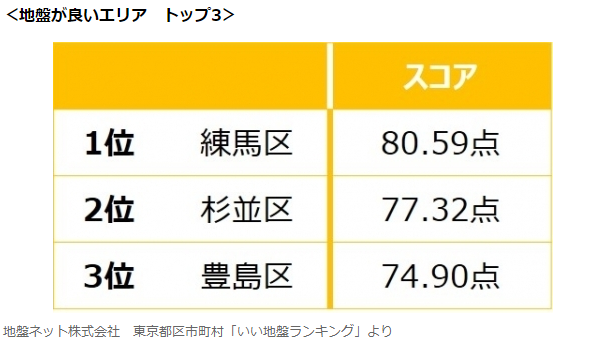 東京都23區(qū)內(nèi),地基最好的地區(qū)為擁有眾多環(huán)境優(yōu)美住宅區(qū)的練馬區(qū),該區(qū)處于相對寬敞平坦的高地上,新建公寓及住宅項(xiàng)目也在不斷增加,絕對是家庭選址時優(yōu)先考慮的區(qū)域。在練馬區(qū),除了河沿邊上人工建造的地塊,其他絕大部分區(qū)域都安全很多。其次是杉并區(qū)及豐島區(qū)。當(dāng)然,哪個區(qū)都有相對安全的地方,在選址時應(yīng)綜合考慮周邊及環(huán)境等因素。