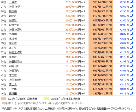 千代田區(qū)區(qū)域地價排名