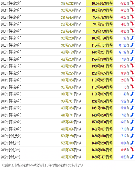 千代田區(qū)地價的歷史變化