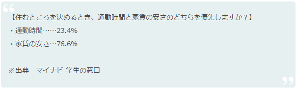 在日本也是一樣,日本的年輕人大多租房住,對于租金和時間成本的問題,他們還是都有自己的見解的。根據日本租客最新的調查數據顯示,有76.6%的人認為租金便宜是優先考慮的問題,而只有23.4%的人認為通勤時間短的優先級更高。