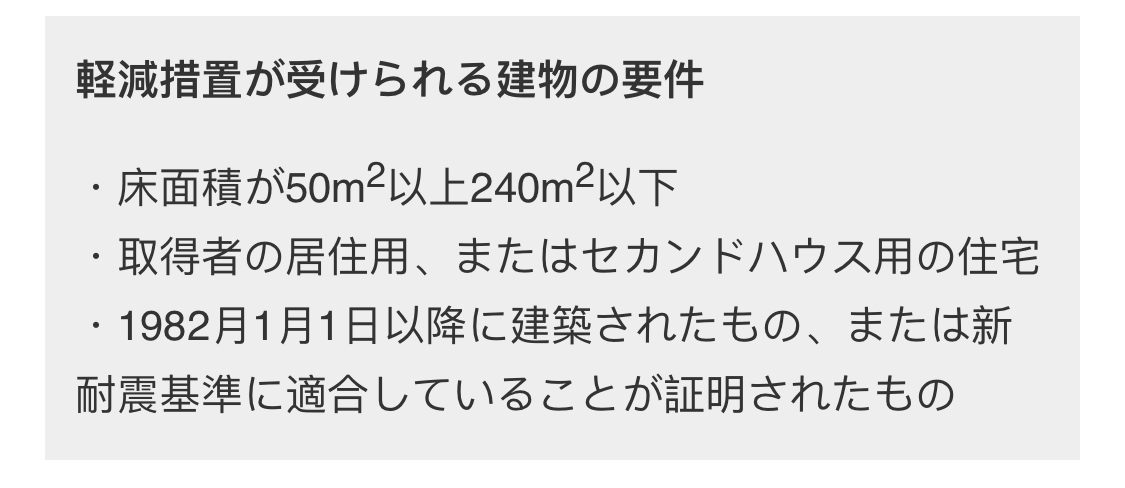 另外,上述的床面積是指購買公寓的情況下,套內自有面積中加上自己的公攤面積。 另外,被認定為長期優(yōu)良住宅的新建住宅,扣除額還可以加上100萬日元達到1300萬日元。另一方面,對于住宅用的土地,如果建有滿足上述要求的住宅,則還可以從不動產(chǎn)取得稅的稅額中扣除以下任意一項較多的金額。