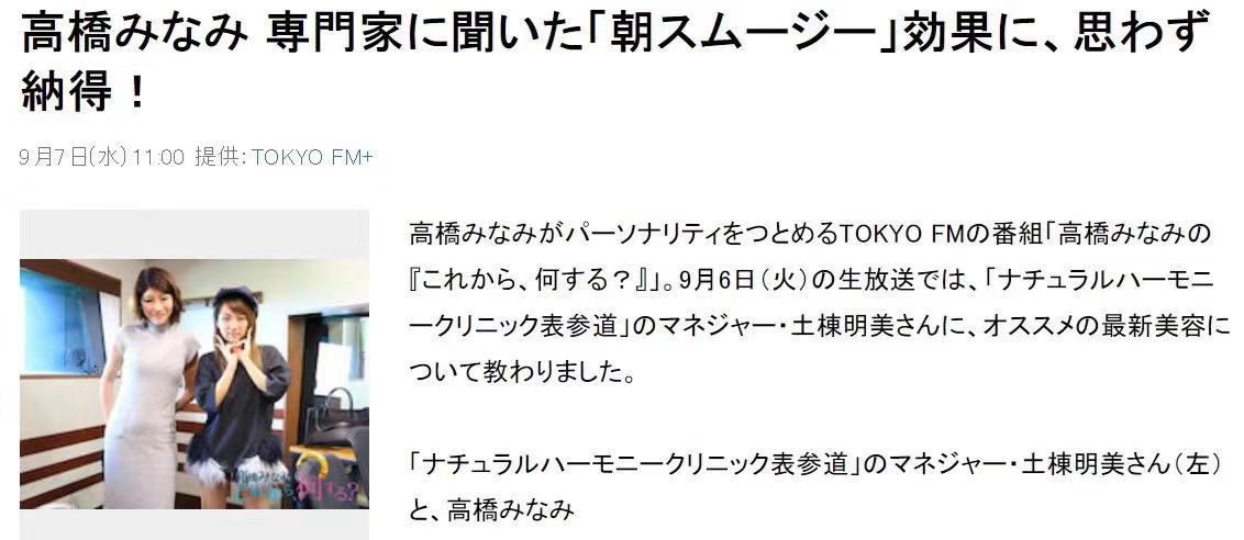 NATURAL HARMONY CLINIC作為很多明星知名人士的御用高級診所,始終走在再生醫療的最前沿。提供的再生醫療不僅在日本國內,也是海外許多考慮接受治療的人士的最佳選擇。