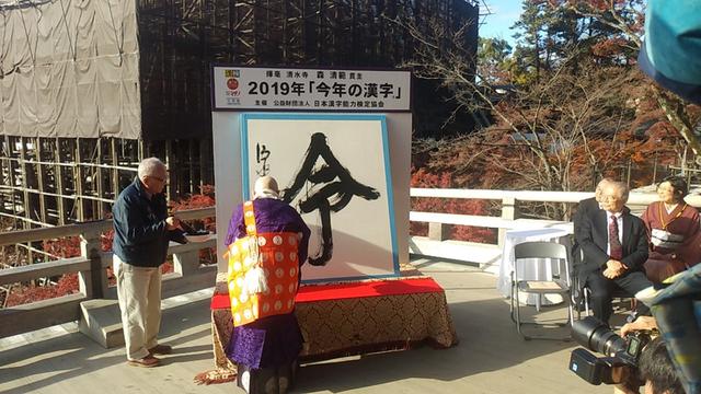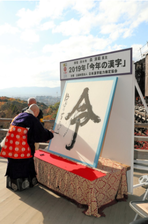 日本漢字能力檢定協會于12月12日,在京都市的清水寺公布了自全國范圍募集而來的“今年的漢字”--“令”字當選2019年代表漢字。