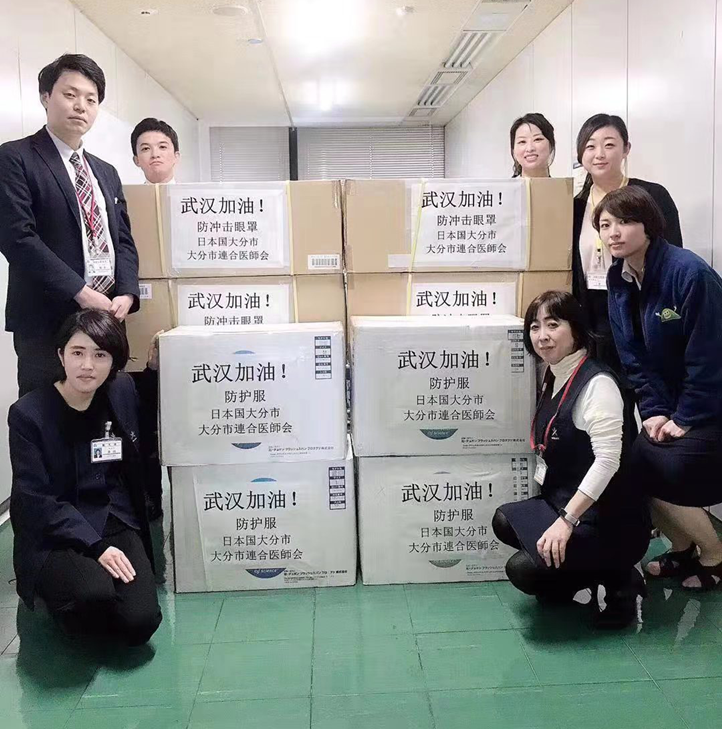 在新型冠狀病毒肺炎疫情蔓延的情況下,得知武漢市的醫療物資出現短缺,大分市1月24日就出臺了支援政策,籌措了一批醫用口罩和防護服,在抗擊疫情的第一時間就發送到了武漢,還在捐贈物資的紙箱上寫上了“武漢加油”等字樣。同時,大分市還面向民間企業和團體征集醫療物資,以向武漢市提供援助。