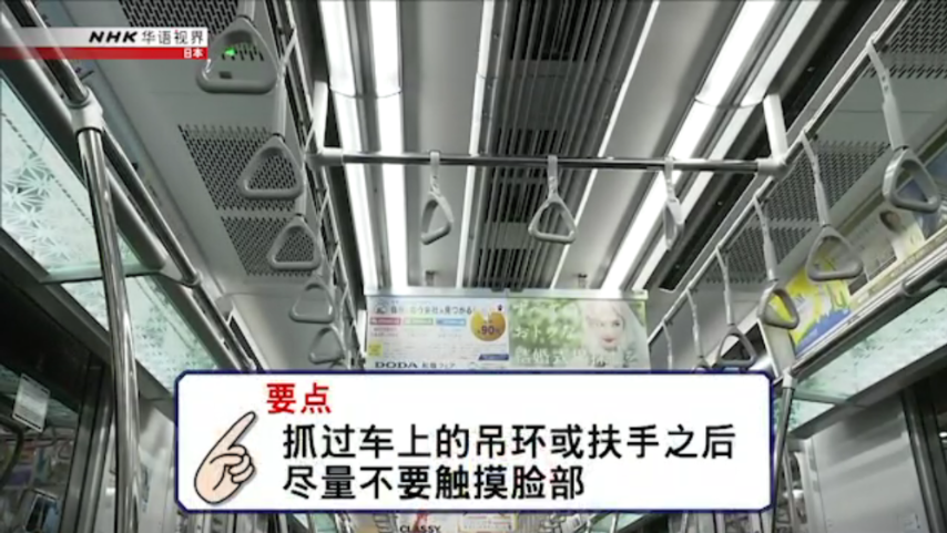 乘坐地鐵、電車等公共交通外出時(shí),和田表示:“很多人在乘坐電車等公共交通工具的時(shí)候,都會(huì)抓著車上的吊環(huán)或扶手,抓過之后請(qǐng)盡量不要觸摸自己的臉部,到站后盡快找地方洗手,這一點(diǎn)至關(guān)重要!如果車廂內(nèi)有人咳嗽,雖然對(duì)方有可能戴著口罩,但還是要盡量遠(yuǎn)離咳嗽的人,或考慮換到其它車廂。”