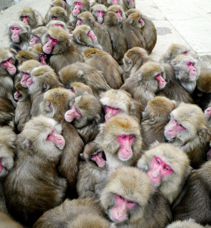 日本迎來嚴寒,在位于淡路島的猿猴中心(兵庫縣洲本市),可以看到日本獼猴聚集在一起抱團取暖,呈現出“獼猴團”的樣子。