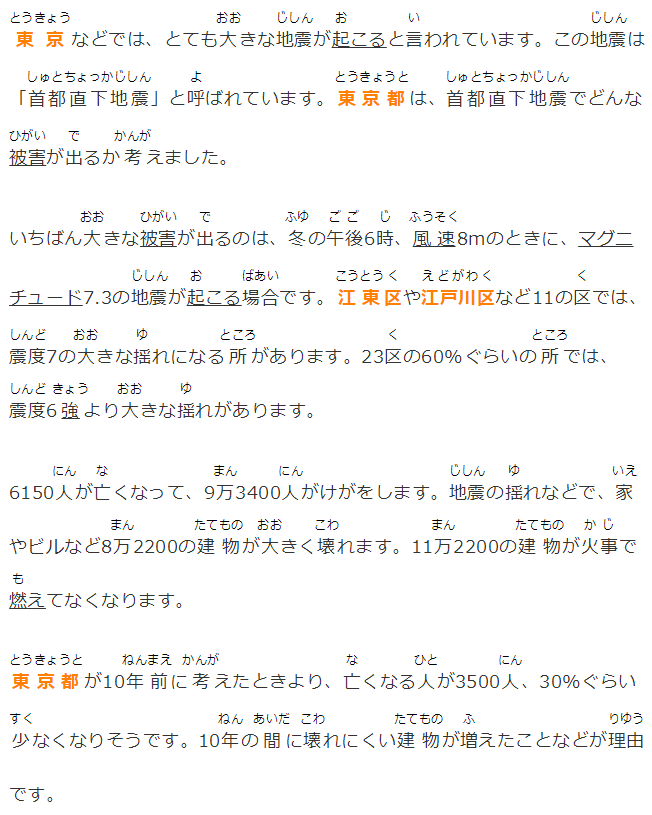 東京などでは、とても大きな地震が起こると言われています。この地震は「首都直下地震」と呼ばれています。東京都は、首都直下地震でどんな被害が出るか考えました。