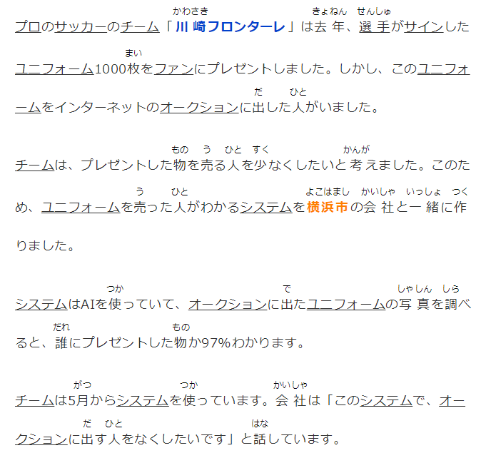 プロのサッカーのチーム「川崎フロンターレ」は去年、選手がサインしたユニフォーム1000枚をファンにプレゼントしました。しかし、このユニフォームをインターネットのオークションに出した人がいました。