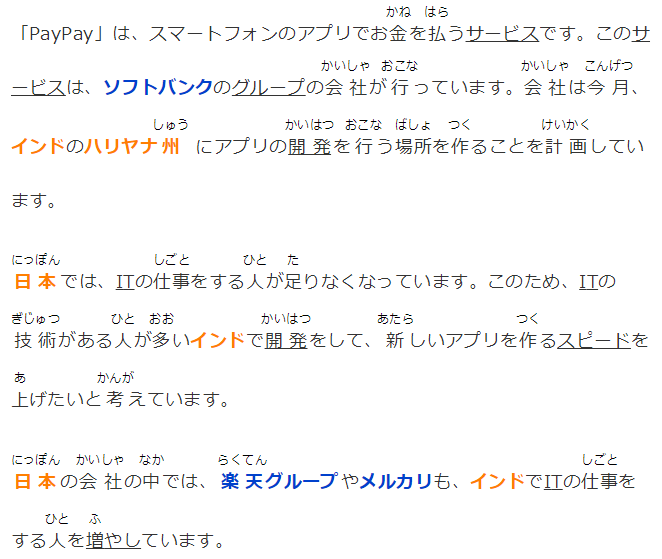 「PayPay」は、スマートフォンのアプリでお金を払うサービスです。このサービスは、ソフトバンクのグループの會社が行っています。會社は今月、インドのハリヤナ州にアプリの開発を行う場所を作ることを計(jì)畫しています。