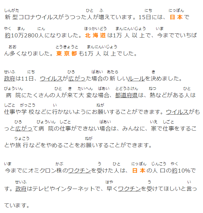 今までにオミクロン株のワクチンを受けた人は、日本の人口の約10%です。政府はテレビやインターネットで、早くワクチンを受けてほしいと言っています。