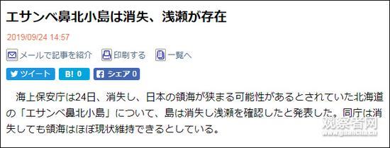 近日,日本尋找了四個多月、一直被傳消失的北海道“Esanbe鼻北小島”終于有了下落。距日本媒體報道,日本海上保安廳24日發布消息稱,“Esanbe鼻北小島”確認已經消失,變成了淺灘。