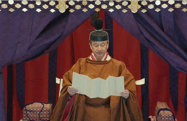 天皇陛下在宣告即位的致辭中宣誓“將時刻祈愿國民的幸福與世界的和平,在親近國民的同時,遵從憲法,作為日本國以及日本國民綜合的象征,恪盡職責”。