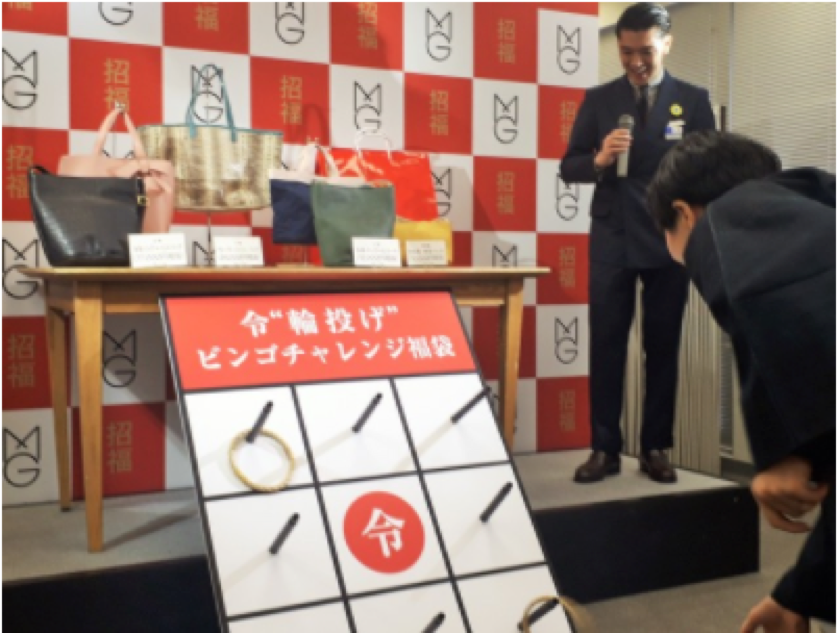 在松屋,顧客在賣場玩套圈便有機會獲得售價為含稅3300日元(約合人民幣214元),但其中商品最高價格相當于26,000日元(約合人民幣1690元)手提包的福袋;還有售價為含稅1800日元(約合人民幣700元),可享受松阪牛及國產黑毛和牛滋味的問答形式福袋等。據了解,松屋此次共準備了400個種類的3萬個福袋。