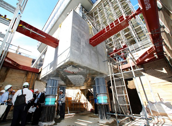 此前,已有三只塔腳與地基分離,利用臨時支柱支撐,近日則切斷了最后的一只,并將撤去一部分地基同時設置減震裝置。據悉,在改造前,電視塔有可能因震度5強的地震而倒塌損壞,改造后則提升了耐震等級,可承受震度6強的地震。