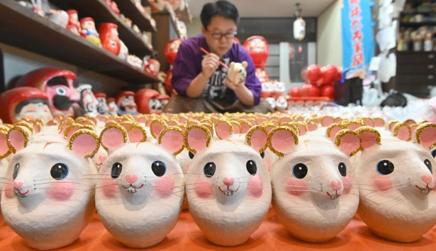 位于日本神奈川縣平冢市的老店--“荒井不倒翁屋”,現已開始將新年吉祥物不倒翁向日本全國發貨,該吉祥物不倒翁的造型為明年的生肖“子鼠”。
