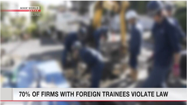 根據(jù)日本厚生勞動(dòng)省的統(tǒng)計(jì),2020年勞動(dòng)基準(zhǔn)監(jiān)督署對(duì)接受外國(guó)人技能實(shí)習(xí)生的有關(guān)單位所進(jìn)行的入內(nèi)調(diào)查結(jié)果顯示,大約70%的單位都存在違反安全管理或超過規(guī)定時(shí)間的勞動(dòng)等違法違規(guī)現(xiàn)象。